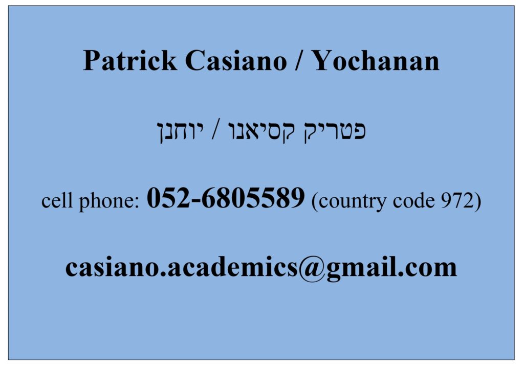 כרגע האתר שלי זמין רק באנגלית. אבל אתם יכולים להתקשר אליי או לכתוב לי בעברית. Meine Webseite ist zur Zeit nur in Englisch verfügbar. Aber Sie können mich gerne in Deutsch anrufen oder anschreiben. Old email address, no longer valid: patrickc1@mail.tau.ac.il